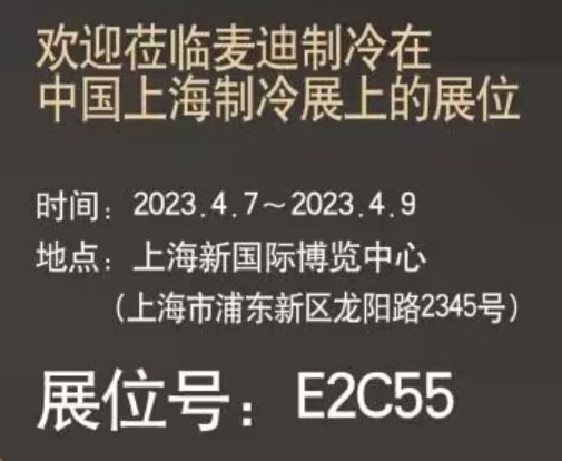浙江麥迪即將于2023年4月7-9日參加在中國上海新國際展覽中心舉辦的2023年中國制冷展,歡迎各位新老客商朋友蒞臨參觀指導!展位號:E2C55